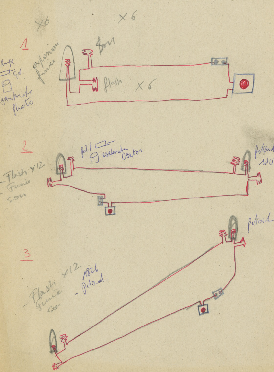 Dessins de préparation pour une performance ou une installation.