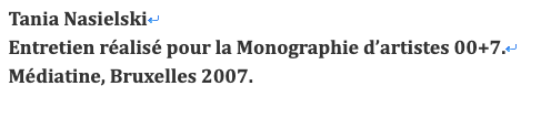 Entretien réalisé pour la Monographie d’artistes 00+7.