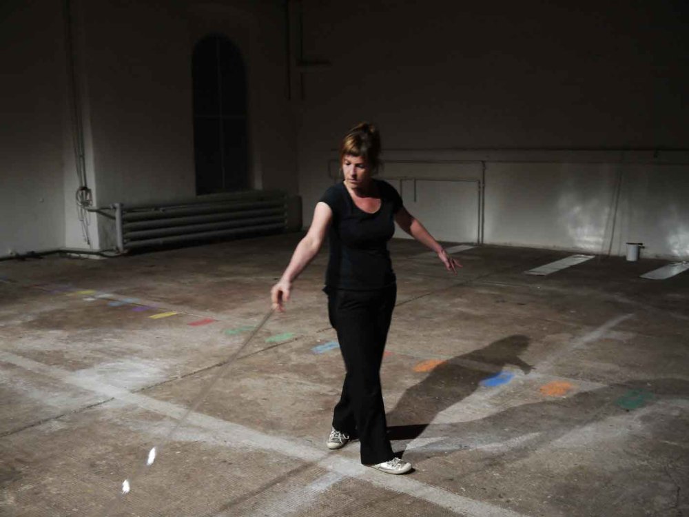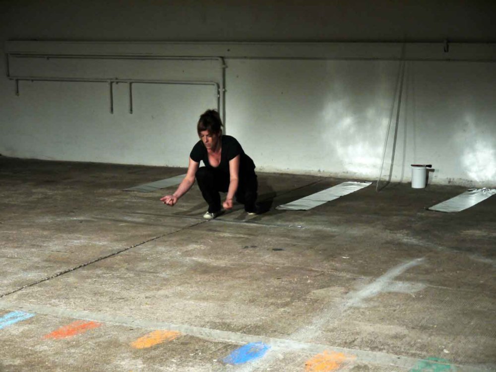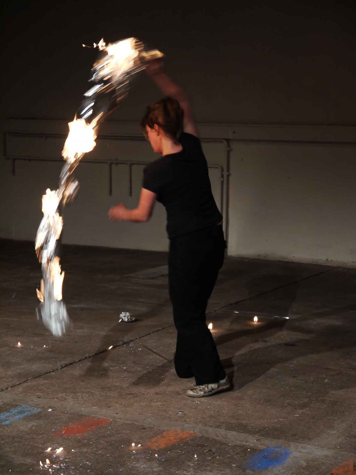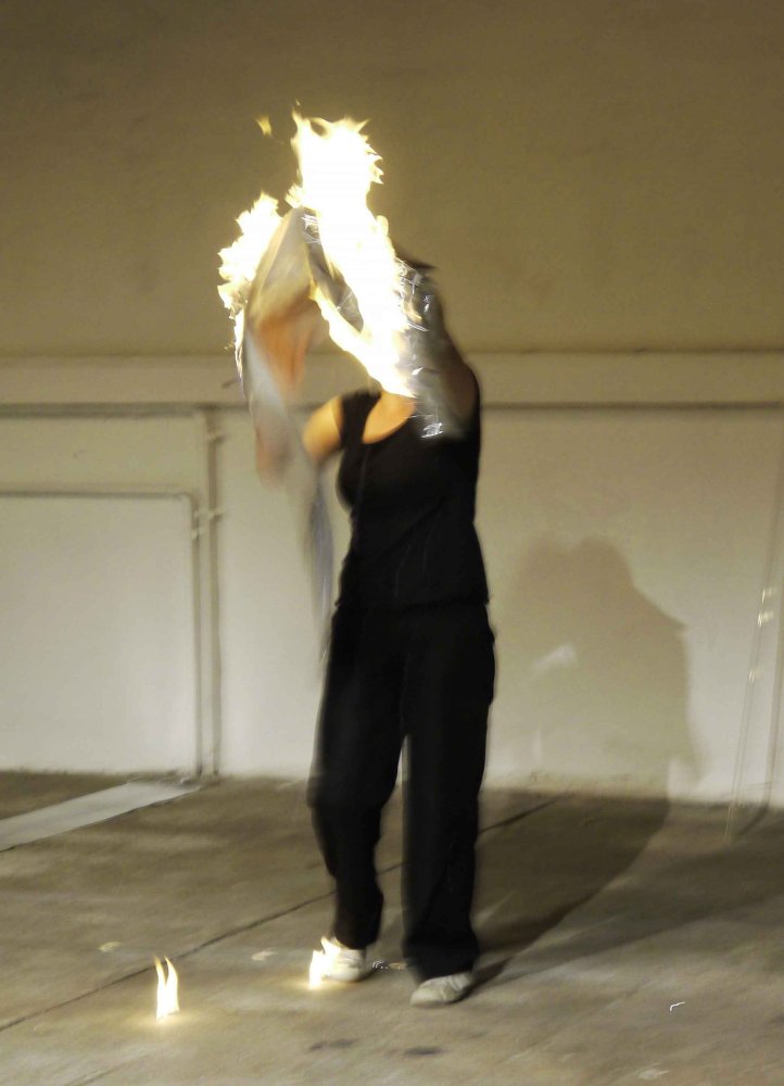Performance avec tubes en verre et papier alumium, sons et mouvements.