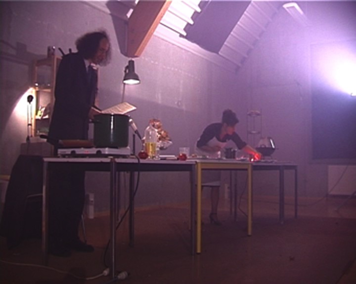 Performance réalisée avec le journaliste scientifique Alexandre Wajnberg, à la Bissectine, à Bruxelles, en novembre 2006.