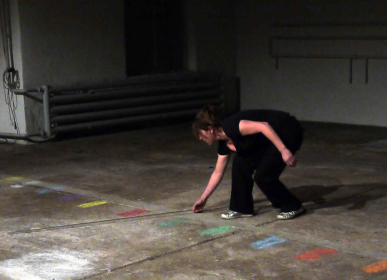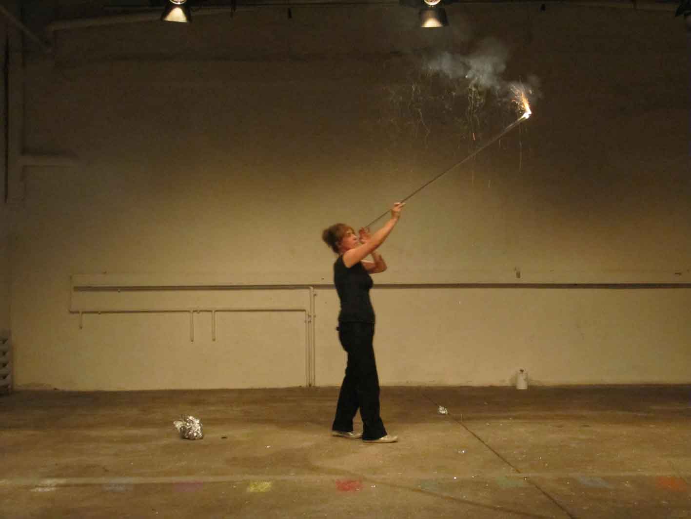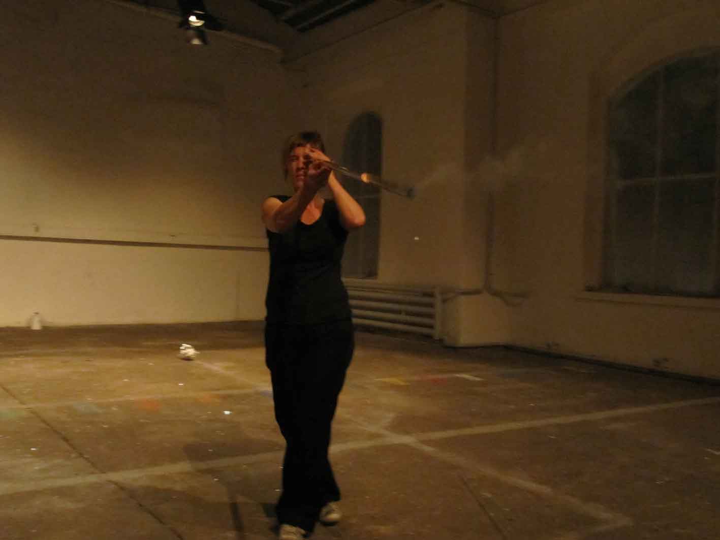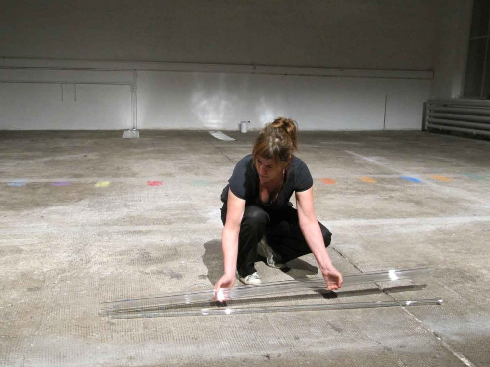 Performance avec tubes en verre et papier alumium, sons et mouvements.