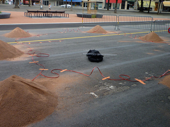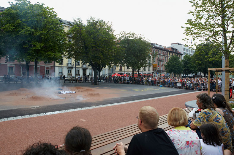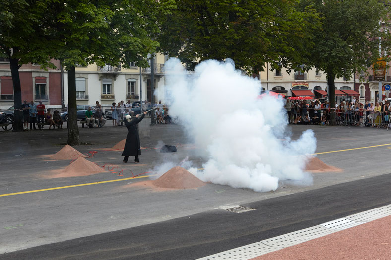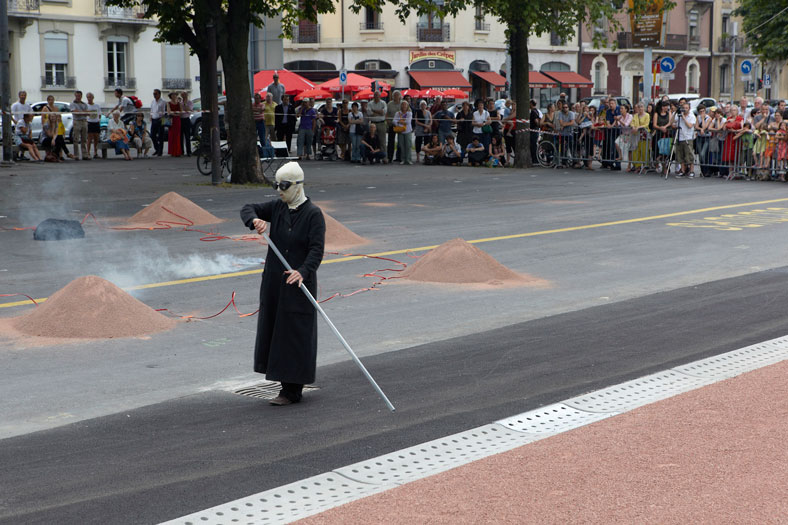 Pour l’ inauguration de la plaine de Plainpalais à Genève, invitation par Le Grü/Theâtre Grütli a réaliser la performance Territoire instable.