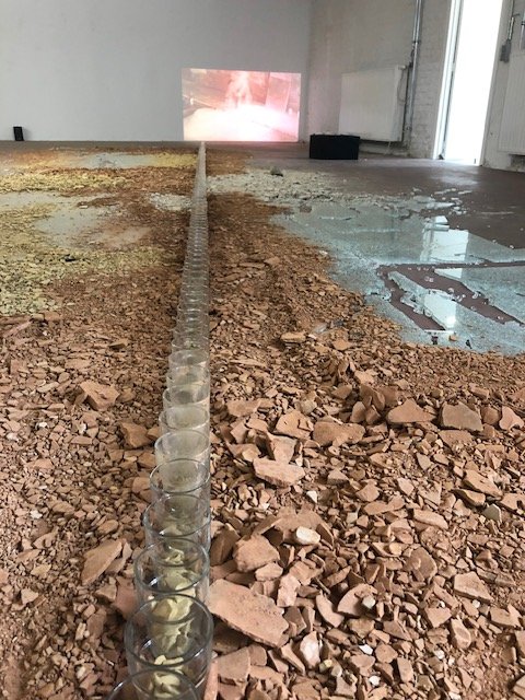 " A partir de matières élémentaires telles que le feu, l’eau, la terre, l’air, qu’elle métamorphose au travers de ses performances, vidéos, installations et photographies, elle tisse un vocabulaire pluridisciplinaire au sein de dispositifs actifs voire explosifs.