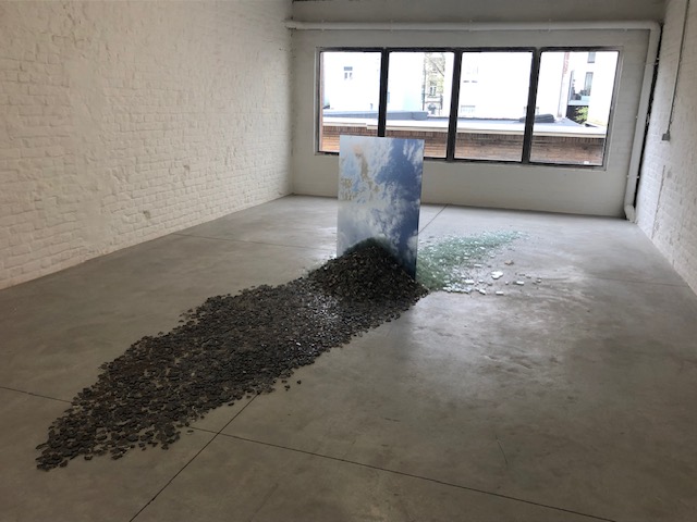 Les oeuvres proposées pour cette exposition, deux séries de photographies Ciel et ligne déchirée, Terre ciel et échelle et les installations Eclats et Traversée sont autant de traces de “l’action†de l’artiste. Pour elle “ces éditions sont des choses qui restent, bien sûr, mais elles n’apparaissent pas comme des choses finies, fermées. Ce sont des ouvertures.â€